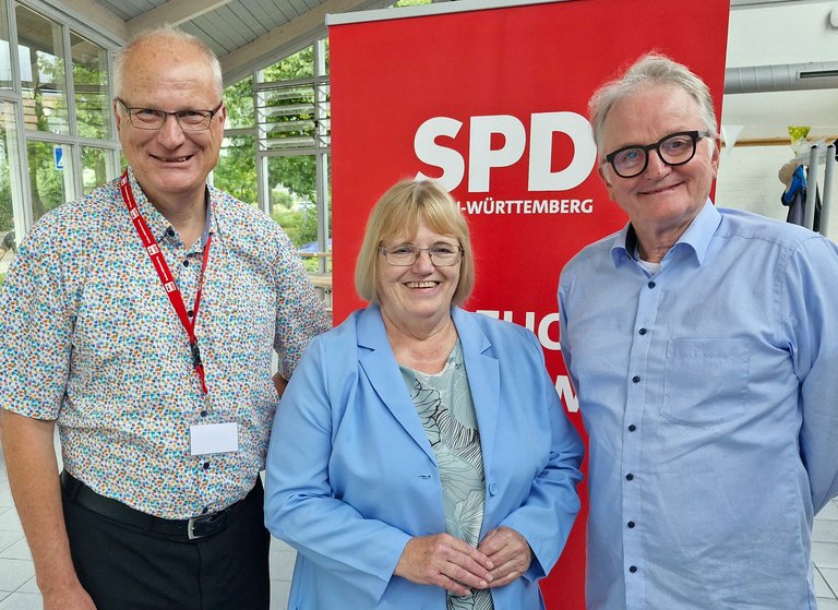 Rainer Arnold (ehem. MdB), der dieses Amt viele Jahre ausgeübte, wollte nun einen Schritt zurücktreten. Zur Vorsitzenden wurde Ute May aus dem Kreis Böblingen gewählt. Der SPD-Landesvorsitzende Andreas Stoch, der auf der LDK eine Rede zu aktuellen Themen und den Themen zur Landtagswahl im März 2026 hielt, gratulierte Ute recht herzlich.